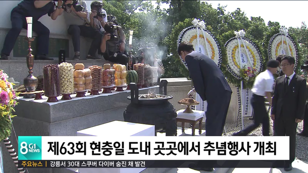 제63회 현충일을 맞아 도내 곳곳에서 순국선열과 호국영령의 희생 정신을 기리는 추념 행사가 개최됐습니다.
