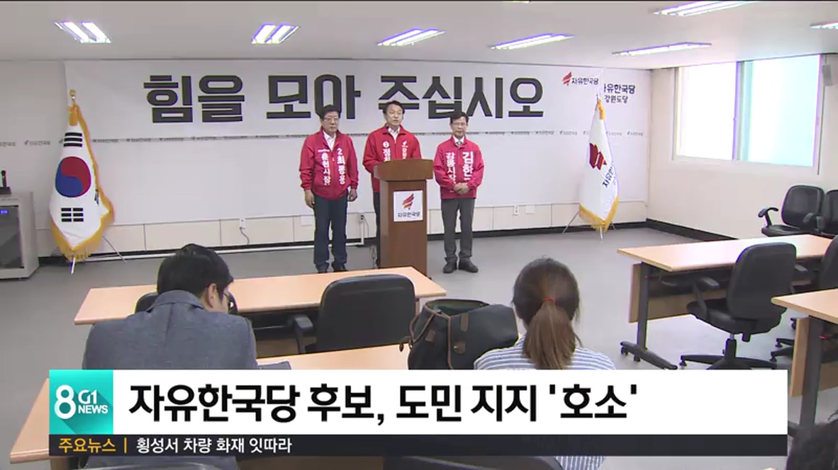 자유한국당 후보들은 '도민에게 드리는 호소문'을 통해 "남북화해와 한반도 긴장 완화도 중요하지만, 그에 못지 않게 강원도의 경제 살림살이와 민생을 책임질 지방선거 역시 중요하다"며 "중앙이슈에 묻혀 누가 일 잘할 후보인지 제대로 알릴 수 조차 없는 현실"이라고 우려했습니다.