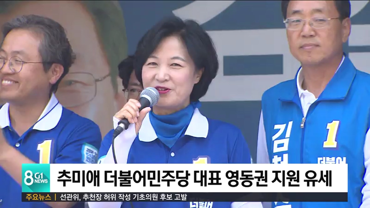 추미애 더불어민주당 대표가 영동지역을 방문해 후보 지원 유세를 펼쳤습니다.