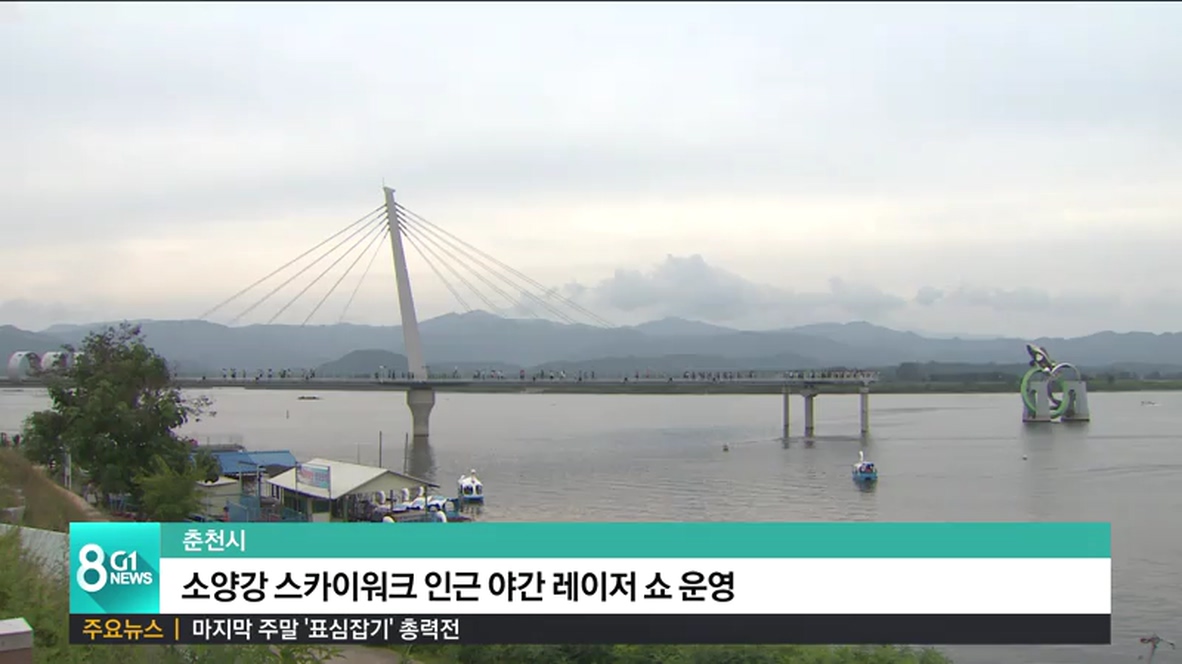 춘천시는 오늘부터 9월까지 근화동 소양강 스카이워크 인근에서 레이저 멀티미디어 쇼가 시범 운영된다고 밝혔습니다.