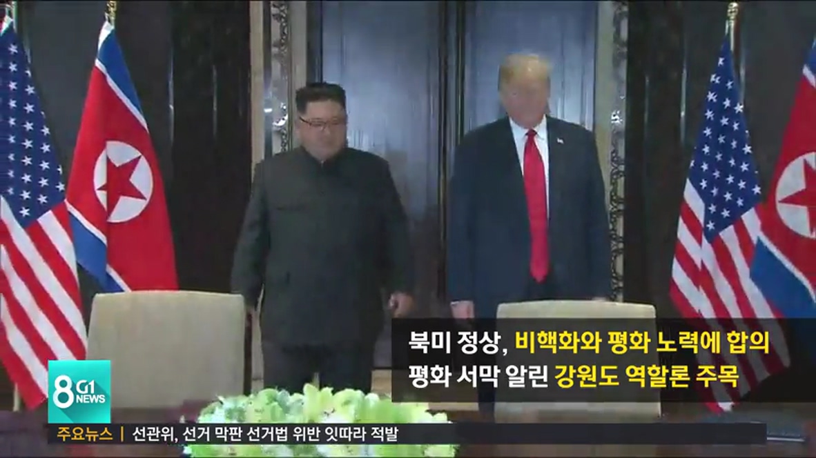 한편 북미 정상회담에 대해 더불어민주당 강원도당은 한반도 평화와 번영의 새로운 지평을 열었다고 평가했고, 자유한국당 도당도 한반도 평화가 정착하는 좋은 계기가 됐으면 하는 바람이라고 평가했습니다.