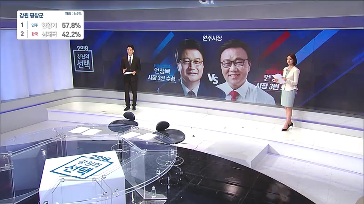 네, 원주시장 선거는 현재 (2시간) 정도 개표가 진행되고 있는데요.
