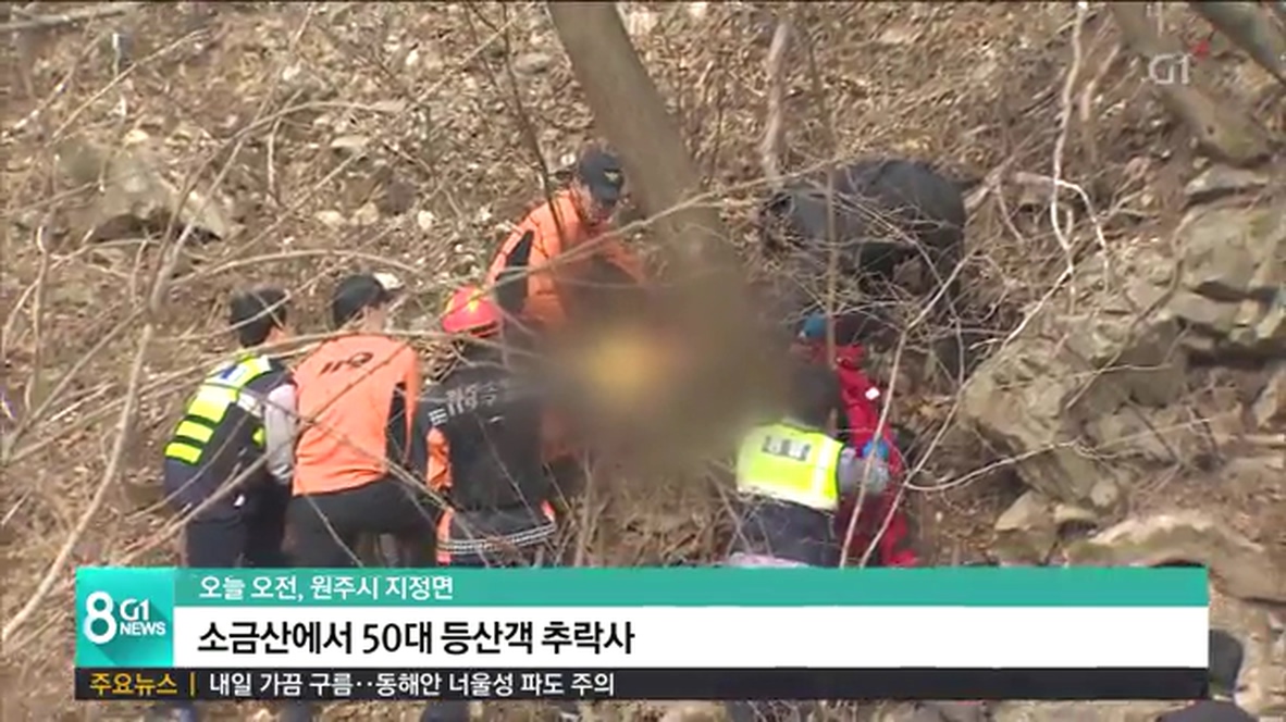오늘 오전 11시 20분쯤 원주시 지정면 소금산 중턱에서 57살 유모씨가 20여m 산 아래로 추락했습니다.