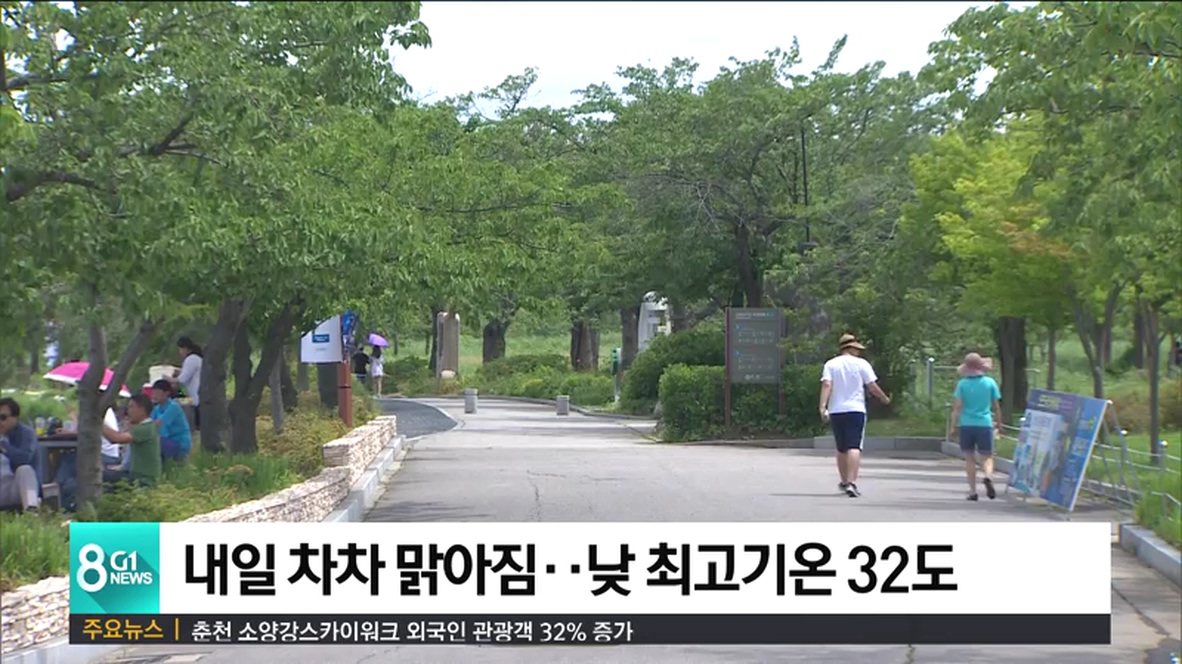 강원지방기상청은 내일부터 영서 지역을 중심으로 낮 기온이 30도 내외로 올라 덥겠다며, 건강관리에 유의를 당부했습니다.