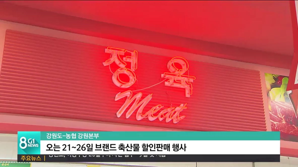 강원도와 농협중앙회 강원지역본부는 오는 21일부터 엿새 동안, 도내 축협마트와 판매장 11곳에서 우수 브랜드 축산물 행사를 연다고 밝혔습니다.
