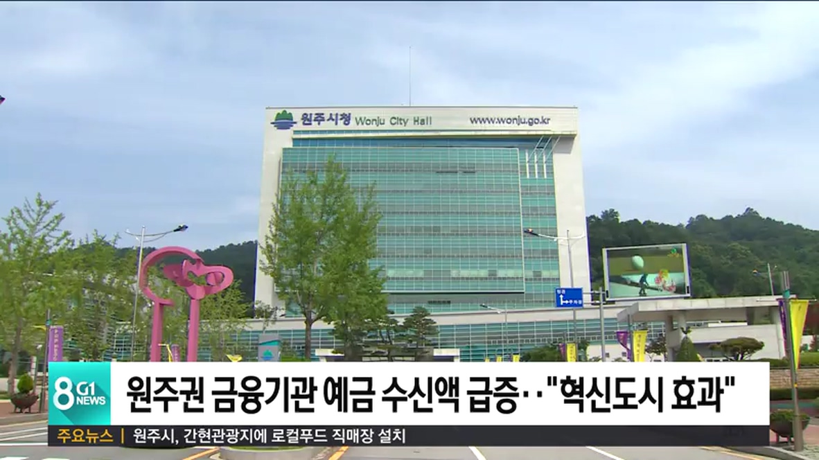 원주지역 금융기관들의 예금 수신액이 혁신도시 공공기관 이전으로 크게 늘어난 것으로 나타났습니다.