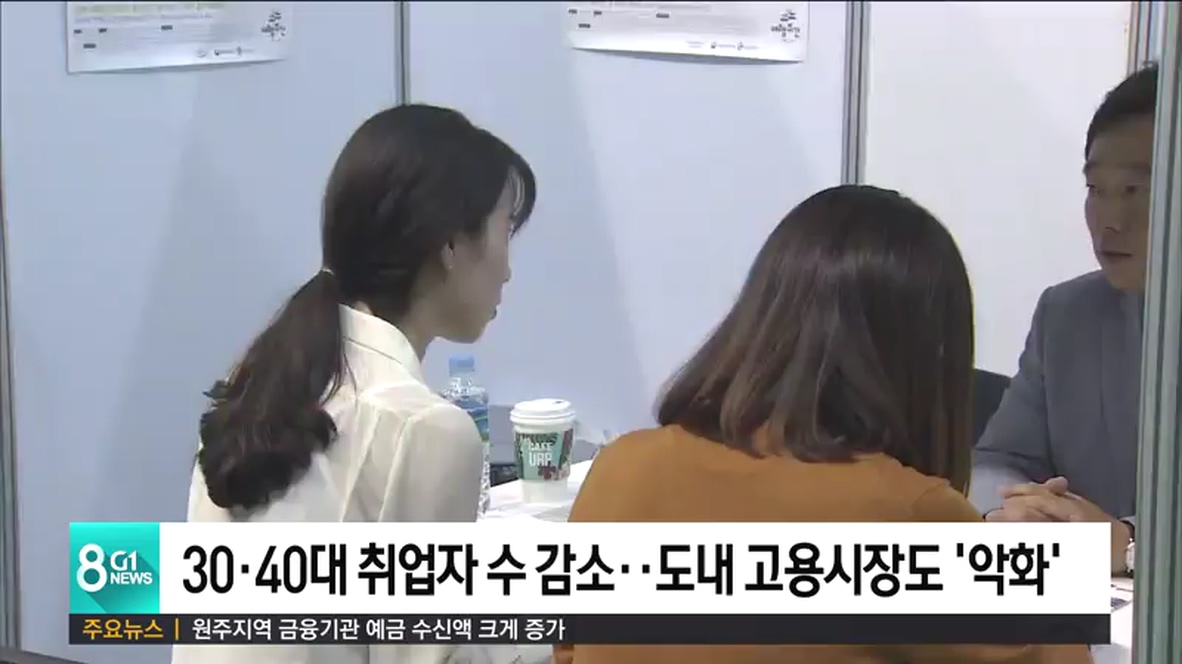 30.40대 취업자 수 감소..도내 고용시장도 '악화'