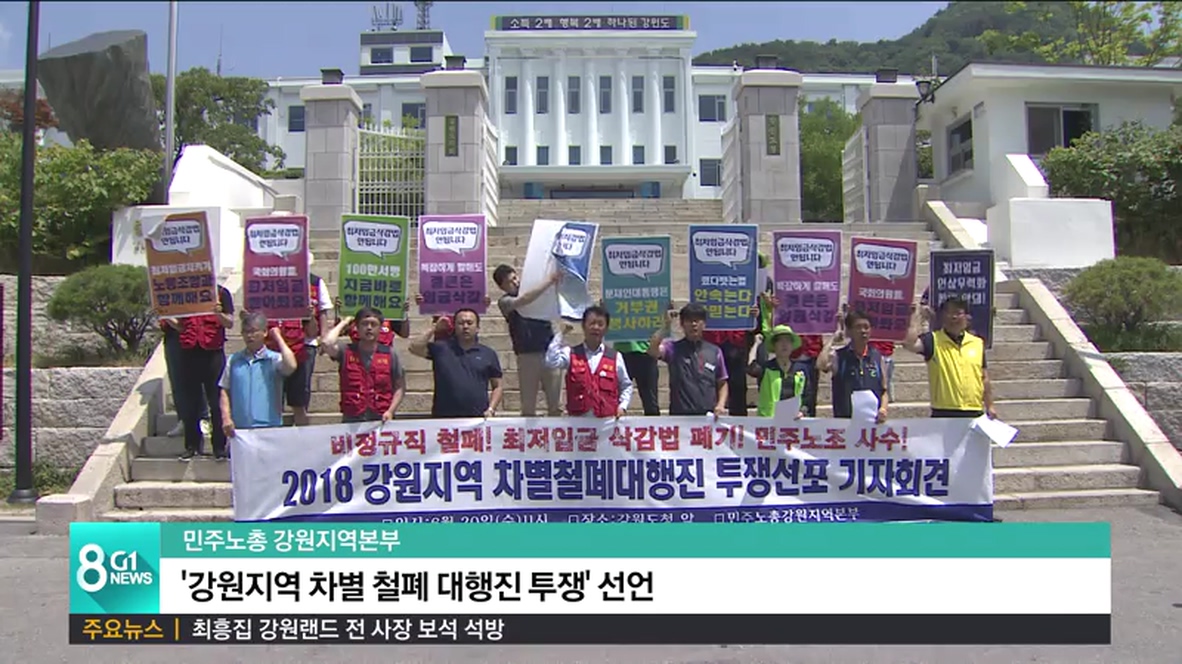 오는 22일까지 지역 노동현장을 찾아다니며 비정규직 철폐와 노조설립을 위한 '강원지역 차별철폐 대행진 투쟁'을 벌이겠다고 밝혔습니다.