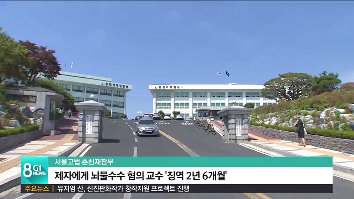 서울고법 춘천재판부 형사1부는 뇌물수수 혐의로 기소된 국립대 교수 51살 A씨에 대한 항소심에서 징역 3년 6개월을 선고한 원심을 파기하고 징역 2년 6개월과 벌금 3천만원, 추징금 1억 478만원을 선고했다고 밝혔습니다.