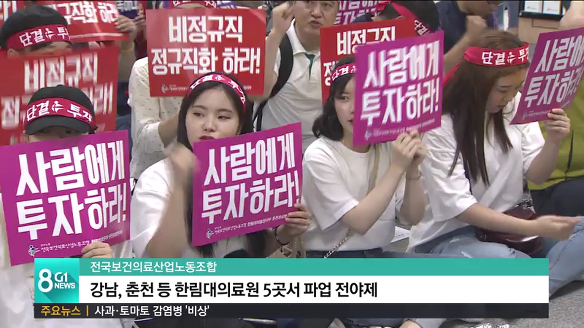 전국보건의료산업노동조합 한림대의료원지부와춘천성심병원지부는 오늘(25일) 강남과 춘천 등 한림대의료원 5곳에서 파업 전야제를 열고, 교섭에 대한 합의를 요구했습니다.