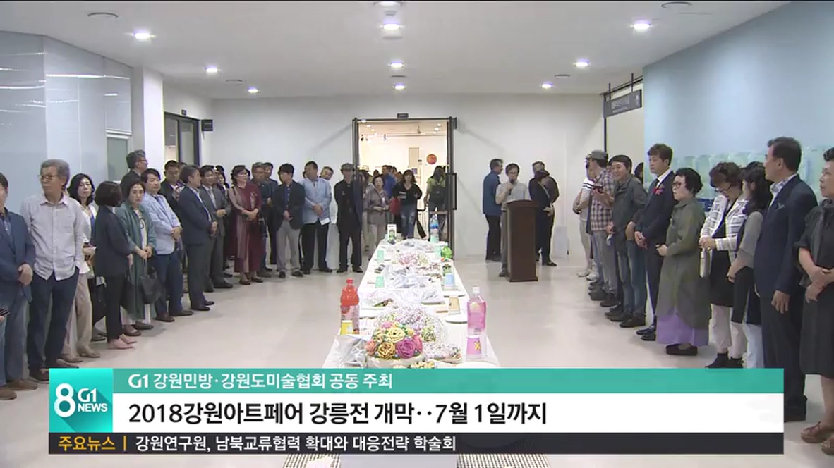 G1 강원민방과 강원도 미술협회가 미술문화 저변 확대를 위해 공동 주최한 2018 강원아트페어 강릉전이 강릉아트센터 전시실에서 개막해 다음달 1일까지 작품을 선보입니다.