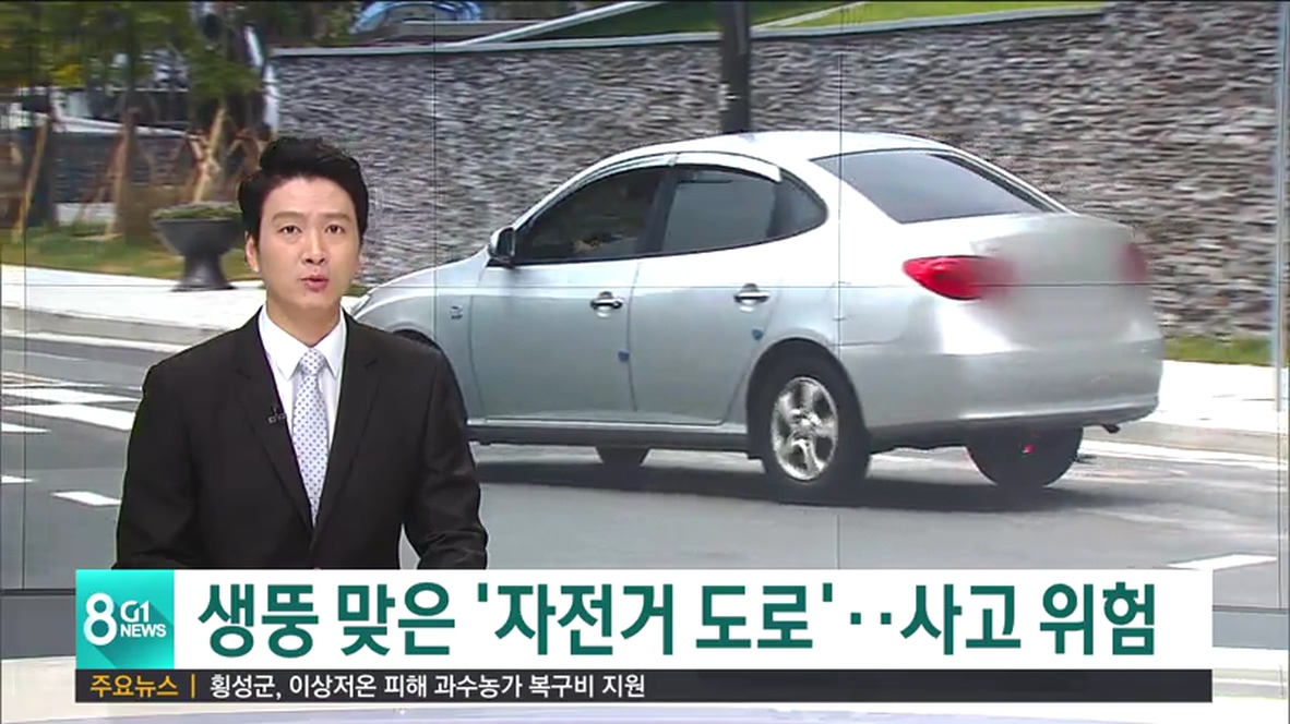 "차량들이 수시로 지나다니는 이곳은 일반 차로와 다를 바가 없지만 사실은 자전거 도로입니다."