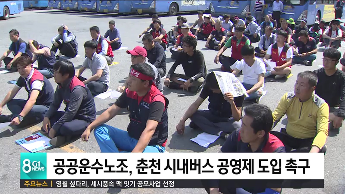 민주노총 전국공공운수노동조합 서울.경기.강원지역버스지부가 춘천지역 시내버스 공영제 시행을 촉구하고 나섰습니다.