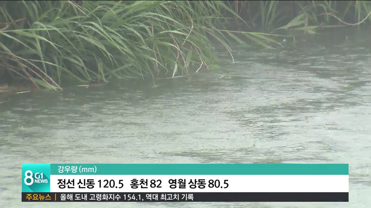 이 시각, 동해안 평지를 제외한 도내 대부분 지역에 호우주의보가 발효 중인 가운데 많은 비가 내리고 있습니다.