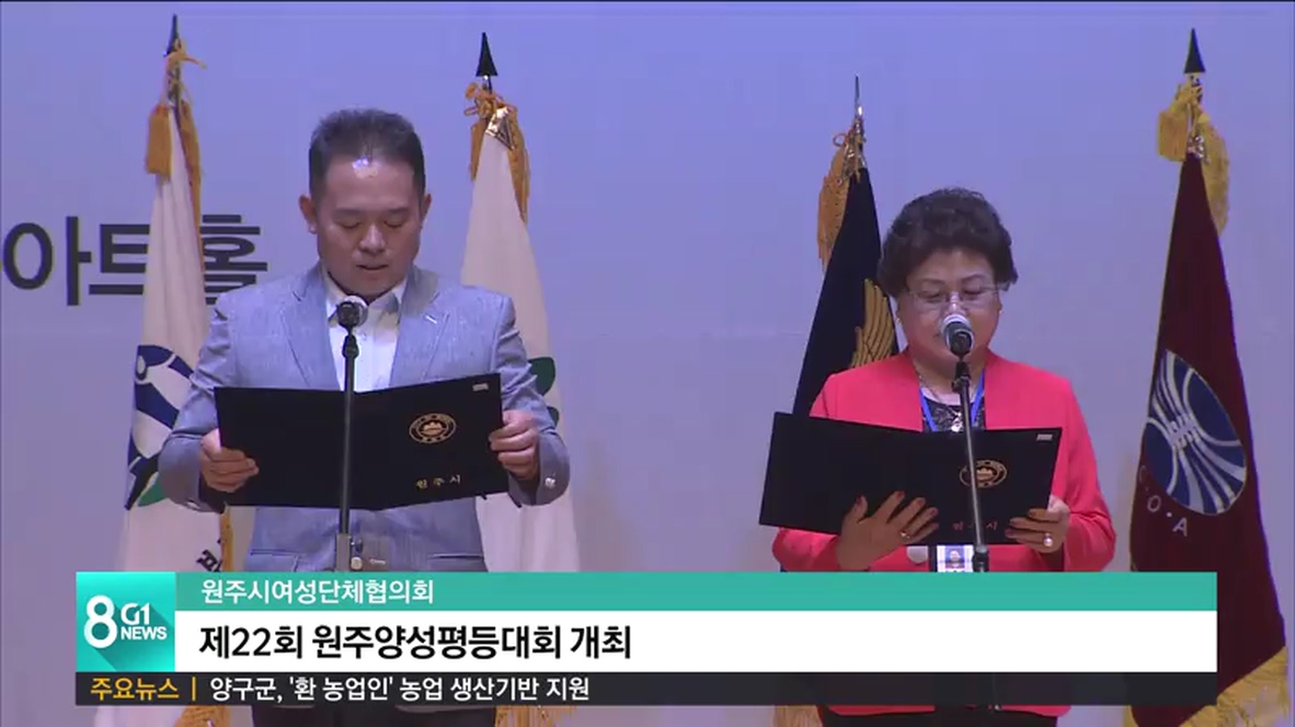 원주시 여성단체협의회가 양성평등 기념 주간을 맞아, 오늘 원주시청 백운아트홀에서 제22회 원주양성 평등대회를 열었습니다.