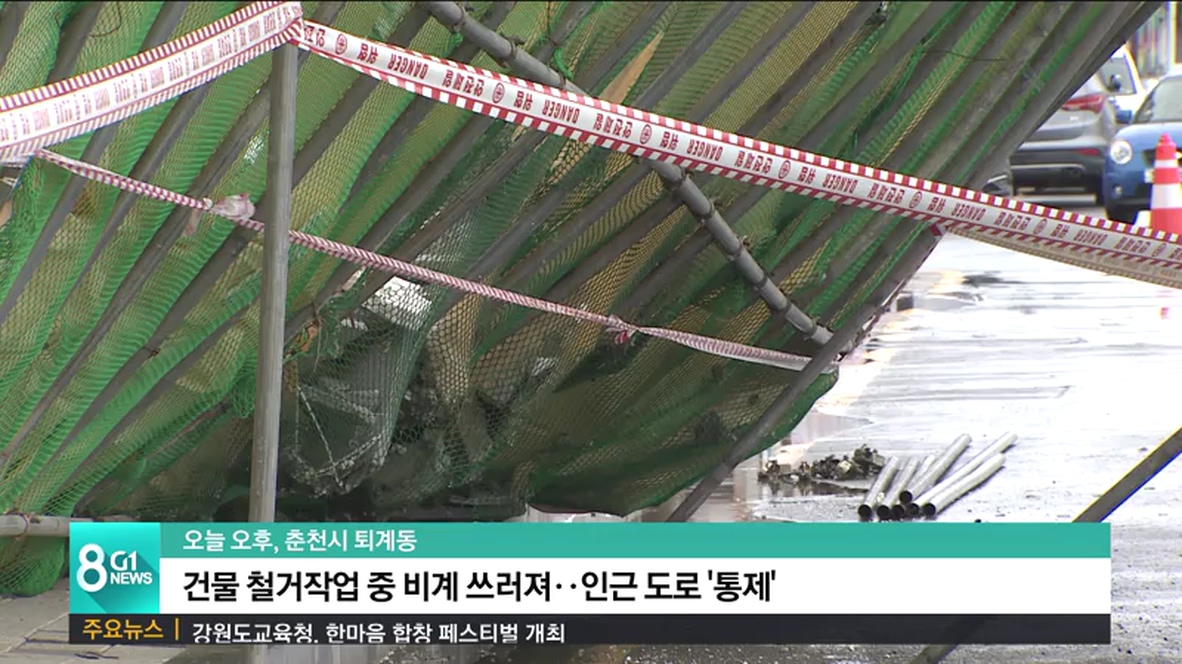 춘천 철거작업 현장서 비계 쓰러져.. 인명피해 없어