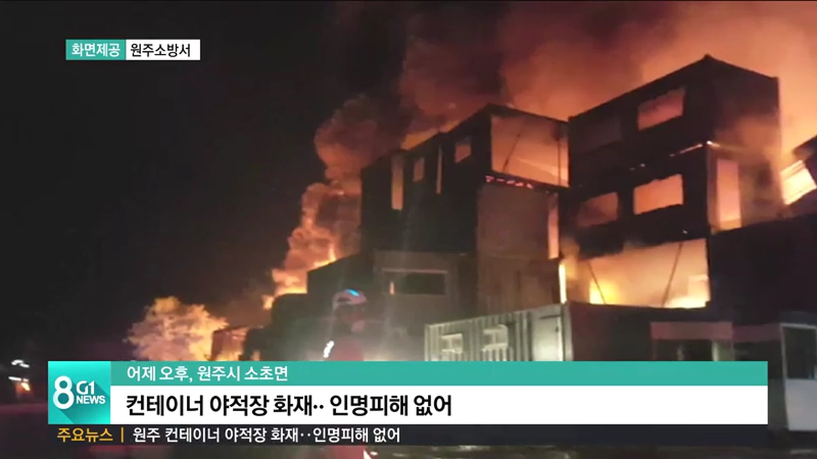 어젯 밤 9시 반쯤 원주시 소초면 한 컨테이너 야적장에서 불이 나, 2시간 30여분 만에 진화됐습니다.