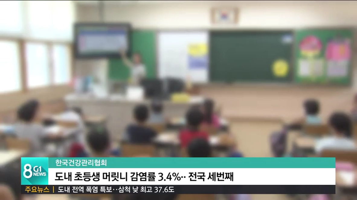 한국건강관리협회가 최근 공개한 '2017년 전국 초등학생 머릿니 실태조사'에 따르면, 도내 초등학생들의 머릿니 감염률은 3.4%로 울산과 충남에 이어 전국에서 세번째로 높았습니다.