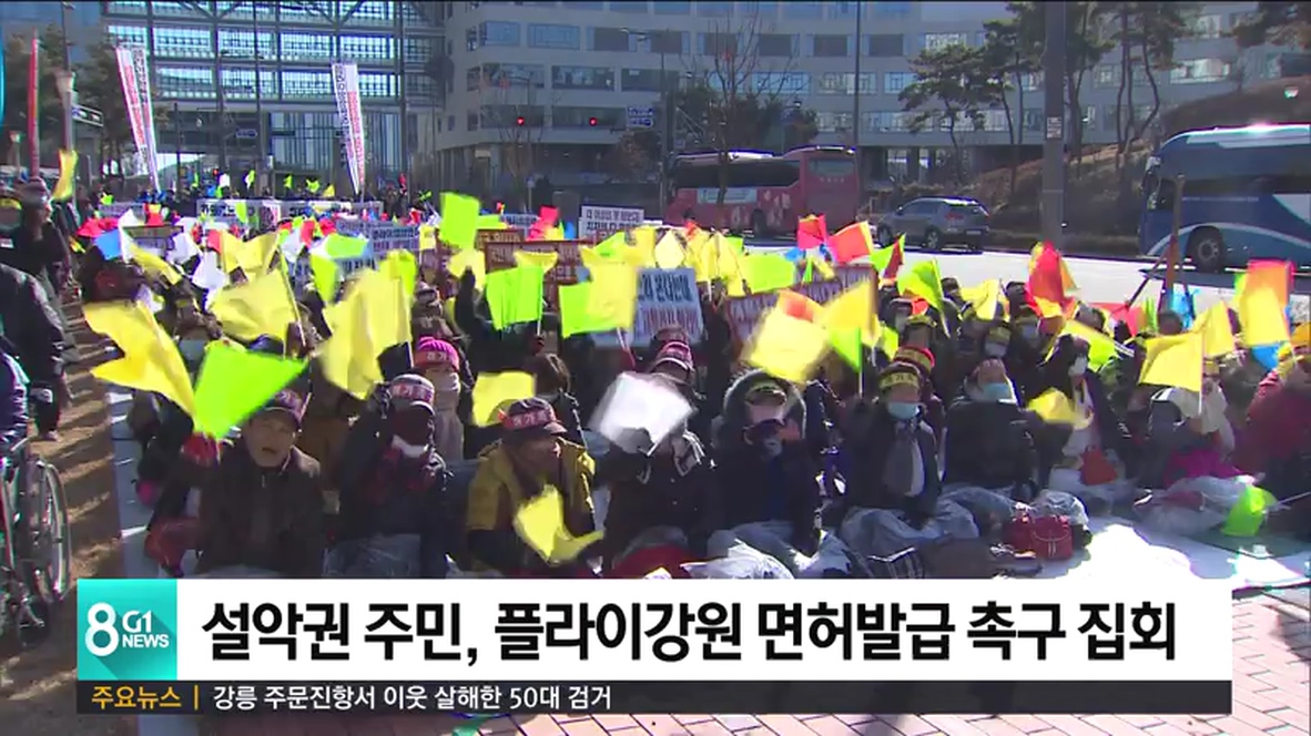 양양과 속초, 고성 지역 주민 800여명은 이날 집회에서 면허신청서를 접수한 지 40일이 넘도록 검토를 미루고 있는 국토부를 규탄하고 조속한 발급을 촉구할 계획입니다.