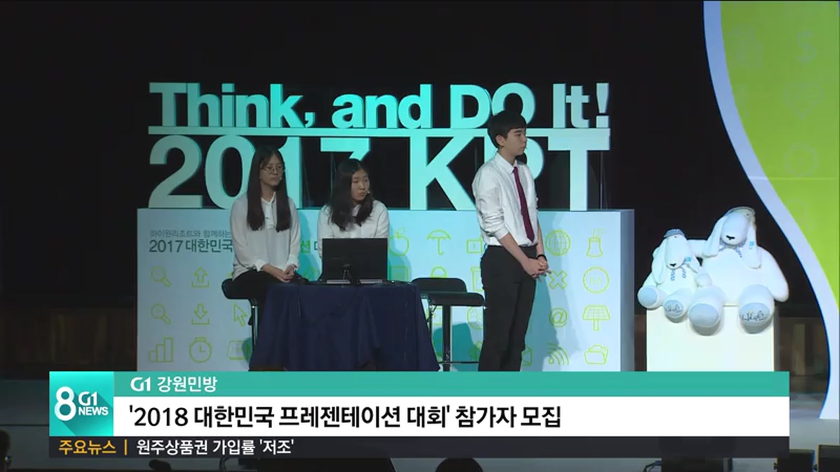 발표와 설득 등 소통 능력을 키워 창의적인 인재를 육성하기 위해 G1강원민방이 주최하고 하이원리조트 등이 후원하는 '2018 대한민국 프레젠테이션 대회' 참가자 모집이 오늘부터 시작됐습니다.