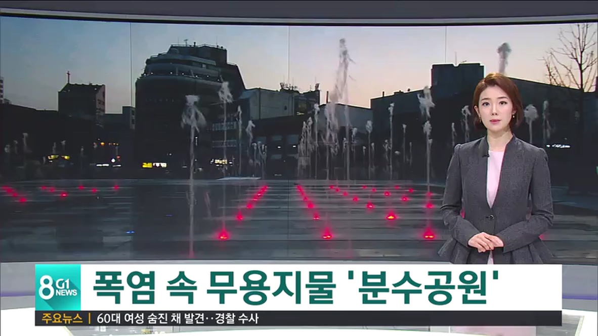 최근 준공된 춘천시 신청사에는 길이 60m, 폭 40m 규모의 분수 광장이 조성됐습니다.