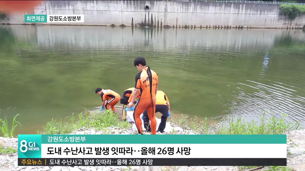 올들어 도내 수난사고는 모두 36건이 발생해, 이중 26명이 사망했으며, 지난해 같은 기간보다 24.1% 늘어난 것으로 나타났습니다.