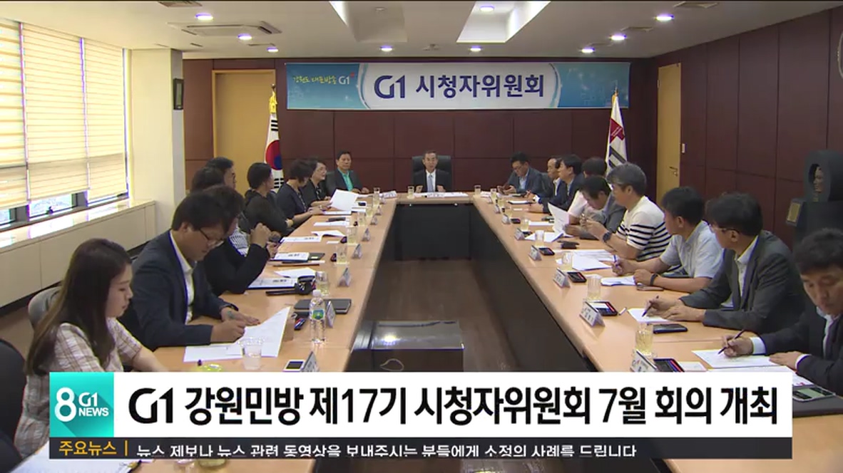 G1강원민방 제17기 시청자위원회 7월 회의가 오늘, G1 춘천 본사 대회의실에서 각계 전문가 위원들이 참석한 가운데 열렸습니다.