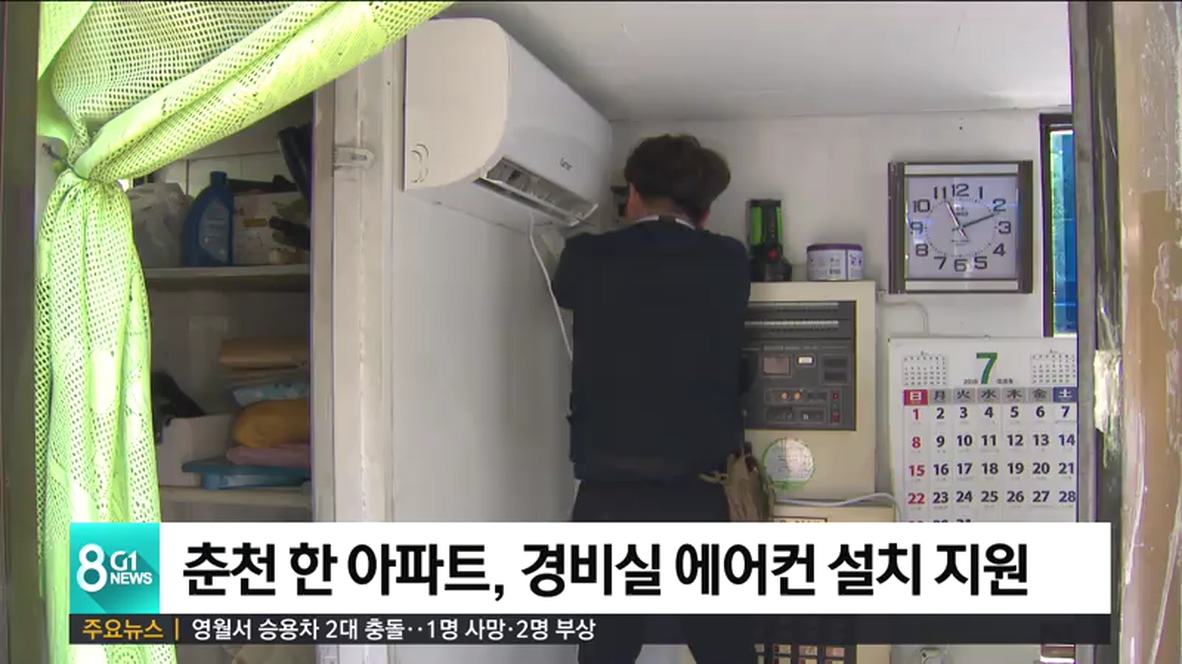 춘천시 퇴계동의 한 아파트 입주자 대표회의는 최근 경비실 냉방기 설치 지원을 결의하고, 단지 내 경비실 8곳에 에어컨을 설치했습니다.