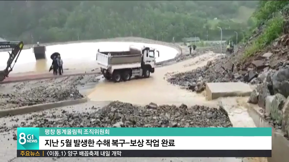 평창 동계올림픽 조직위원회는 지난 5월 집중 호우로 수해 피해를 입은 평창군 대관령면 일대 72 가구에 보상금을 지급하고, 침수 피해를 입은 건물 54동의 정비를 끝냈다고 밝혔습니다.