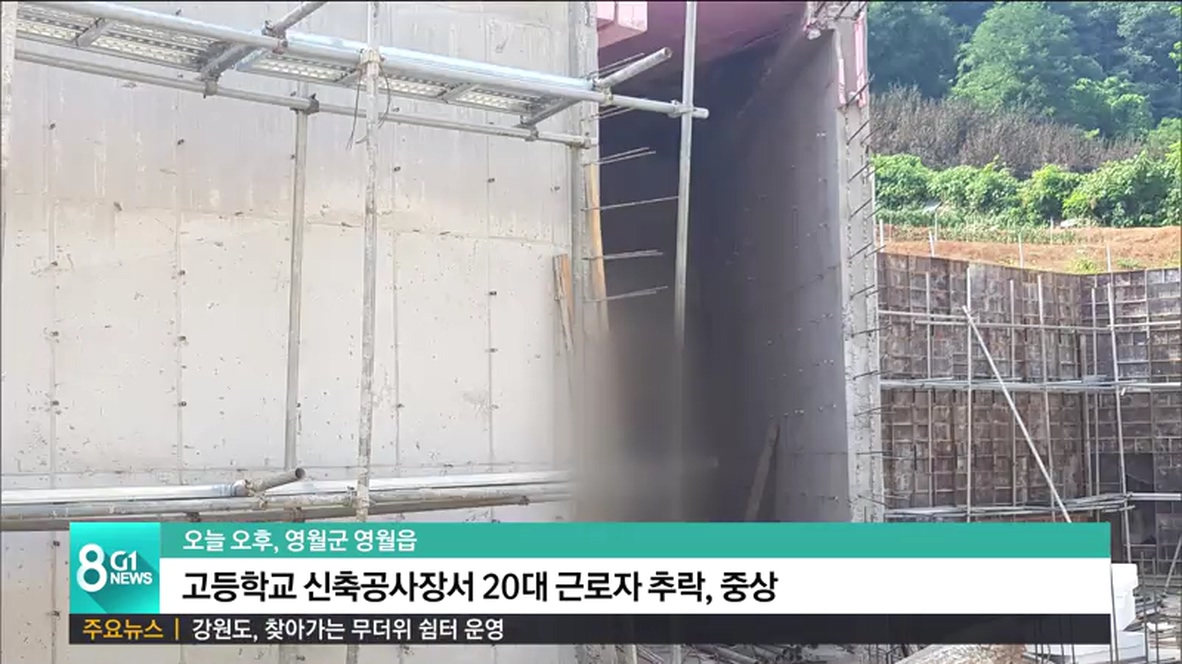 오늘 오후 3시쯤, 영월군 영월읍의 한 고등학교 강당 신축공사장에서 자재 정리작업을 하던 25살 김모씨가 지하 2.5m 아래로 떨어져 크게 다쳤습니다.