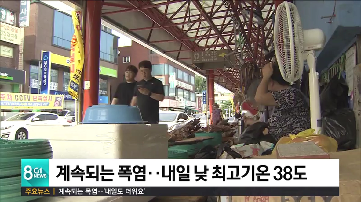 강원지방기상청은 도내 대부분 지역에 폭염경보가 발효된 상태로, 온열질환자 발생과 농.수.축산물 피해에 유의를 당부했습니다.