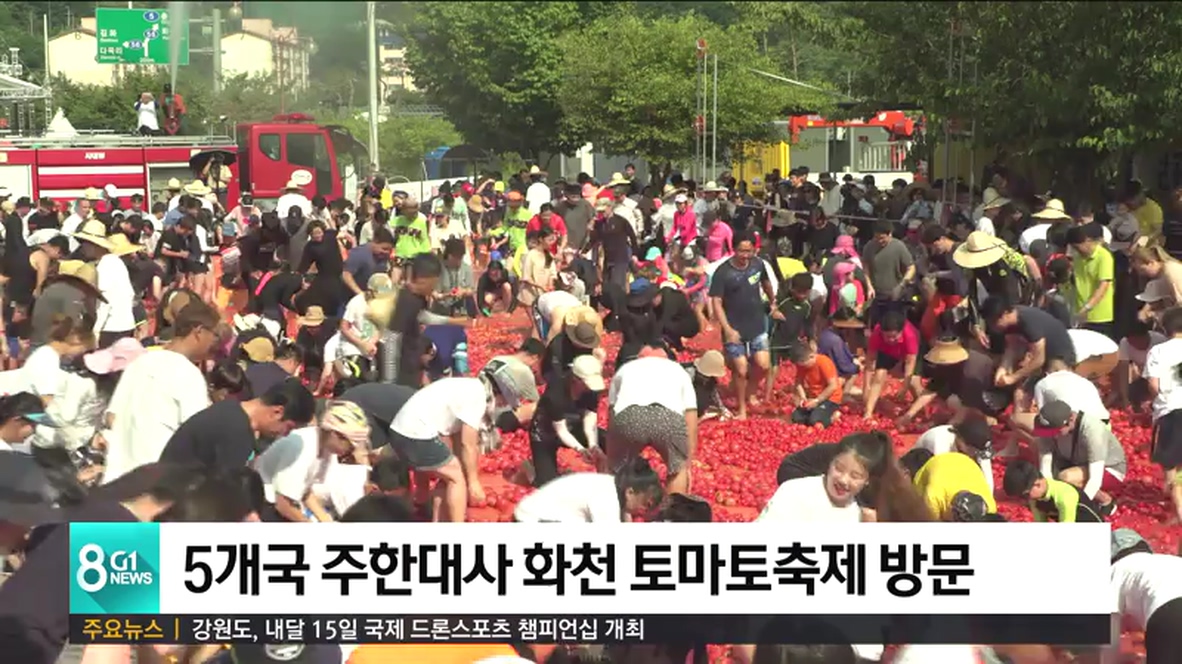주한대사와 대사관 직원들이 화천에서 열리고 있는 2018 토마토축제장을 찾았습니다.