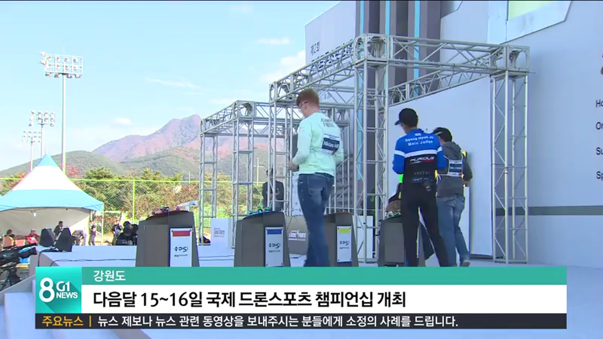 강원도는 클럽과 국가대항 스피드레이싱과 시범 종목인 드론슬라럼 등으로 펼쳐지는 '2018 국제 드론스포츠 챔피언십' 대회를, 다음달 15일과 16일 이틀간 영월 스포츠파크 일원에서 개최한다고 밝혔습니다.