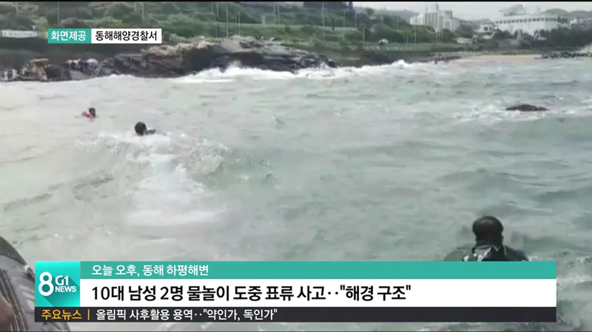 동해해경에 따르면, 19살 동갑내기인 이들은 해변에서 물놀이 도중 파도에 떠밀려 표류하다가, 신고를 받고 출동한 해경에 의해 구조됐습니다.