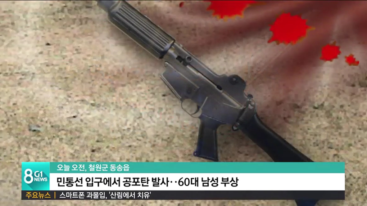 오늘(7일) 오전 5시 9분쯤, 철원군 동송읍 대위리 민통선 입구에서 공포탄이 발사돼 시민 1명이 부상을 입었습니다.