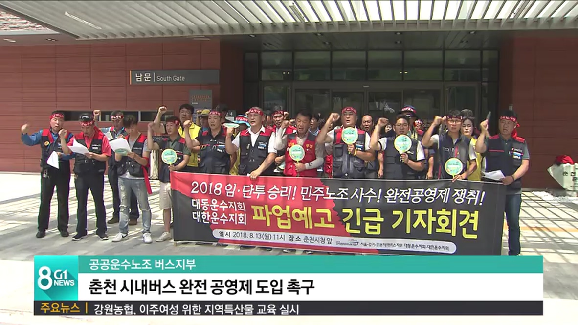 노조 측은 '현재 춘천시가 지원하는 손실보조금 없이는 대동.대한운수의 운영이 사실상 불가능한 상황으로, 시내버스 운영의 투명성과 공공성 확보를 위해선 춘천시가 버스는 물론, 노선권과 노선조정권 모두를 공공의 것으로 하는 완전 공영제를 조속히 시행해야 한다'고 주장했습니다.