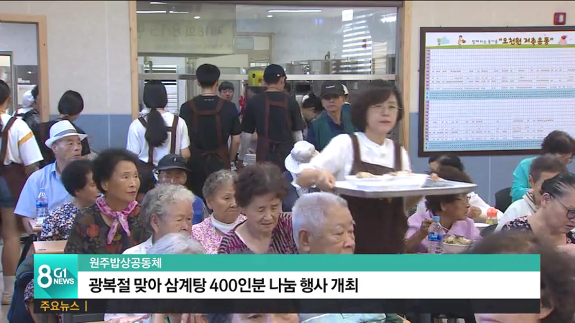 원주 밥상공동체 종합사회복지관이 광복절을 맞아, 지역 어르신 400여 명을 모시고 나눔 행사를 열었습니다.