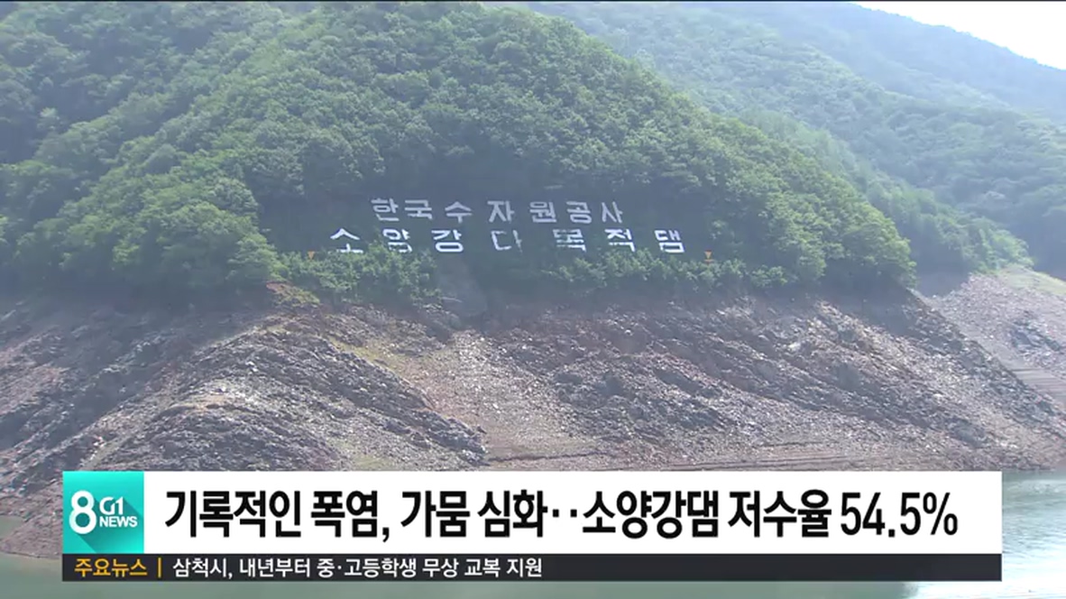 기록적인 폭염,가뭄 심화..소양강댐 저수율 54.5%