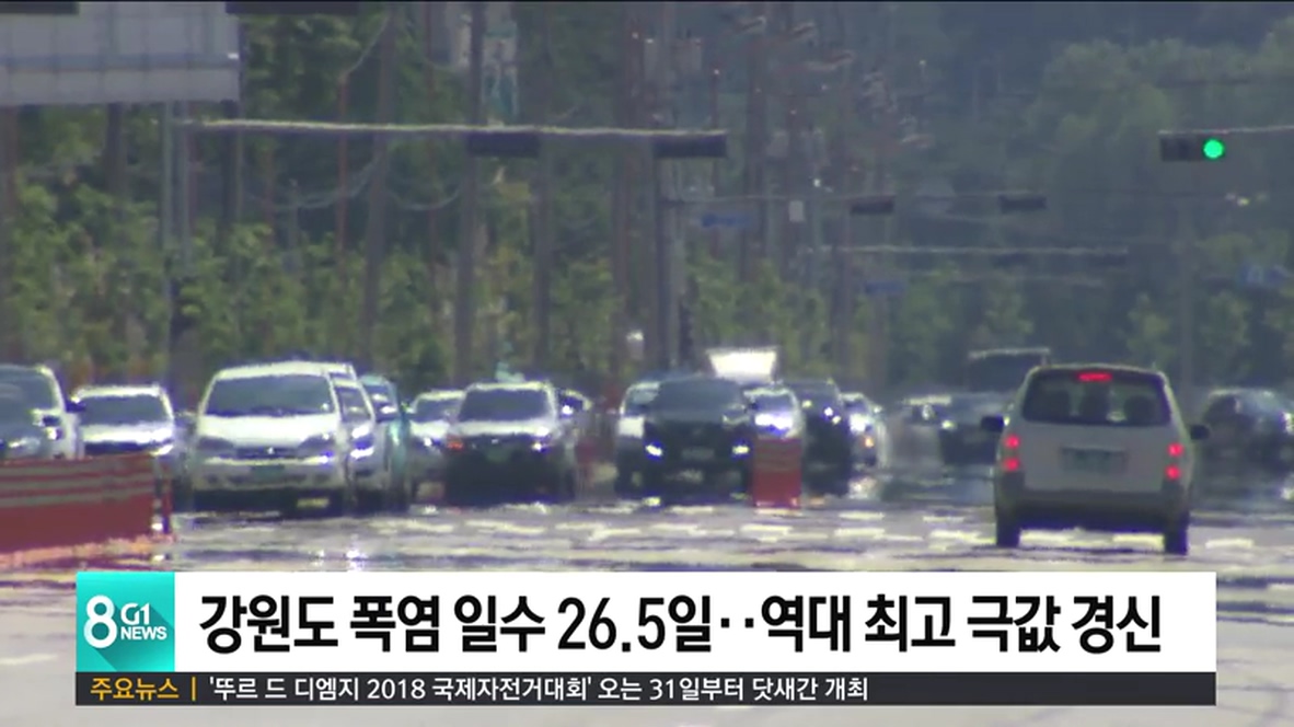 강원지방기상청에 따르면, 올들어 도내 폭염 일수는 26.5일을 기록해, 지난 1973년 기상청 관측 이래, 최다를 기록했던 1994년 26일간의 폭염 기록을 새롭게 경신했습니다.
