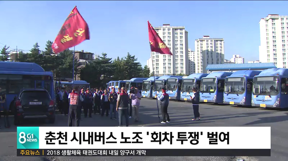 춘천지역 유일의 시내버스 업체인 대동.대한운수 노사가 경영 정상화 해법을 놓고 갈등을 빚고 있는 가운데, 노조가 투쟁 수위를 높였습니다.