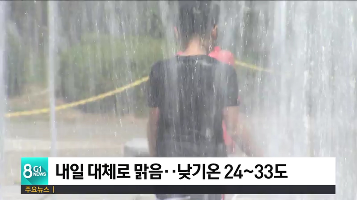 아침기온은 15~22도, 낮기온은 24~33도의 분포로 오늘과 비슷하겠습니다.