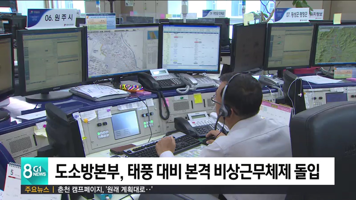 강원도소방본부는 16개 소방서장과 태풍대비 긴급영상회의를 갖고, 본격적인 비상근무체제에 돌입했습니다.
