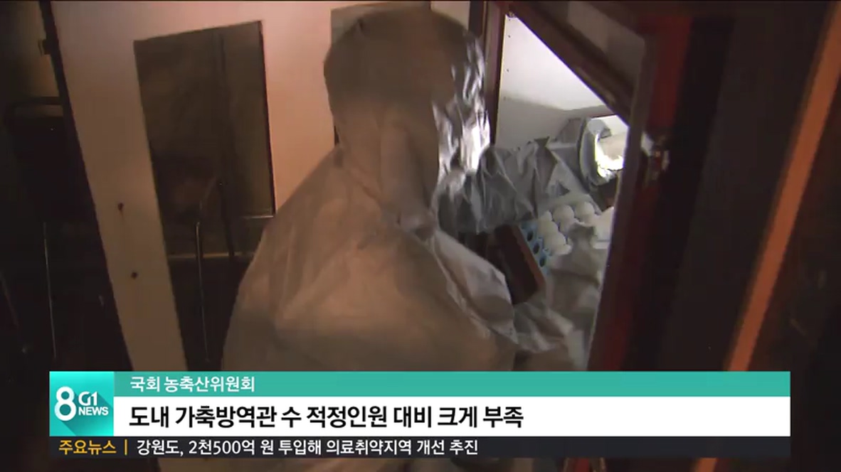 도내에 배치된 가축방역관의 수가 적정인원에 크게 못미치는 수준인 것으로 나타났습니다.
