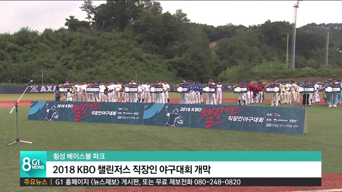 KBO 한국야구위원회가 주최하고, 문화체육관광부가 후원하는 '2018 KBO 챌린저스 직장인 야구대회'가 횡성 베이스볼 파크에서 시작됐습니다.
