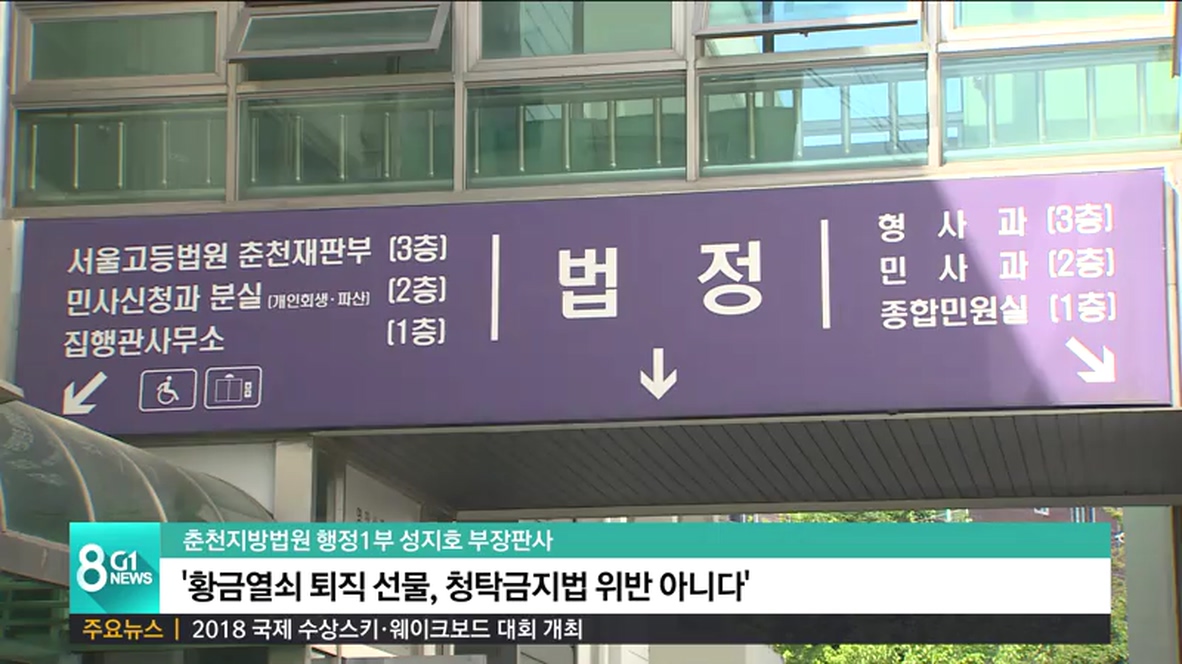 춘천지방법원 행정 1부 성지호 부장판사는 태백시청 공무원 A씨가 강원도지사를 상대로 낸 '청탁금지법 위반 신고 통보 취소' 소송에서 원고 승소 판결을 내렸습니다.
