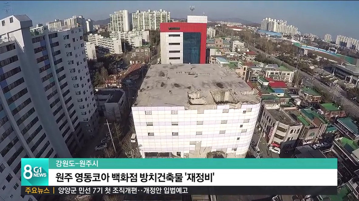 강원도와 원주시는 장기간 공사가 중단돼 도심흉물로 방치됐던 원주 영동코아 백화점 건축물이 '공사중단 장기방치 건축물 정비 선도사업' 대상에 선정됐다고 밝혔습니다.
