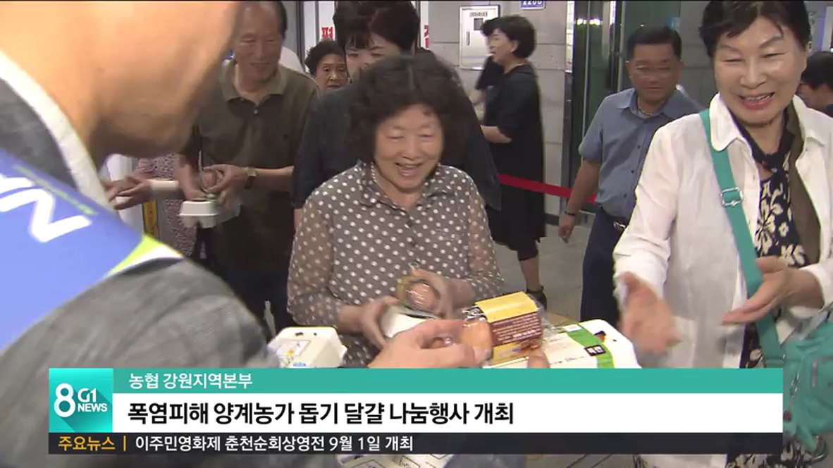 농협 강원지역본부가 오늘 남춘천역에서 폭염피해를 입은 양계농가를 돕기 위한 '달걀 나눔행사'를 개최했습니다.