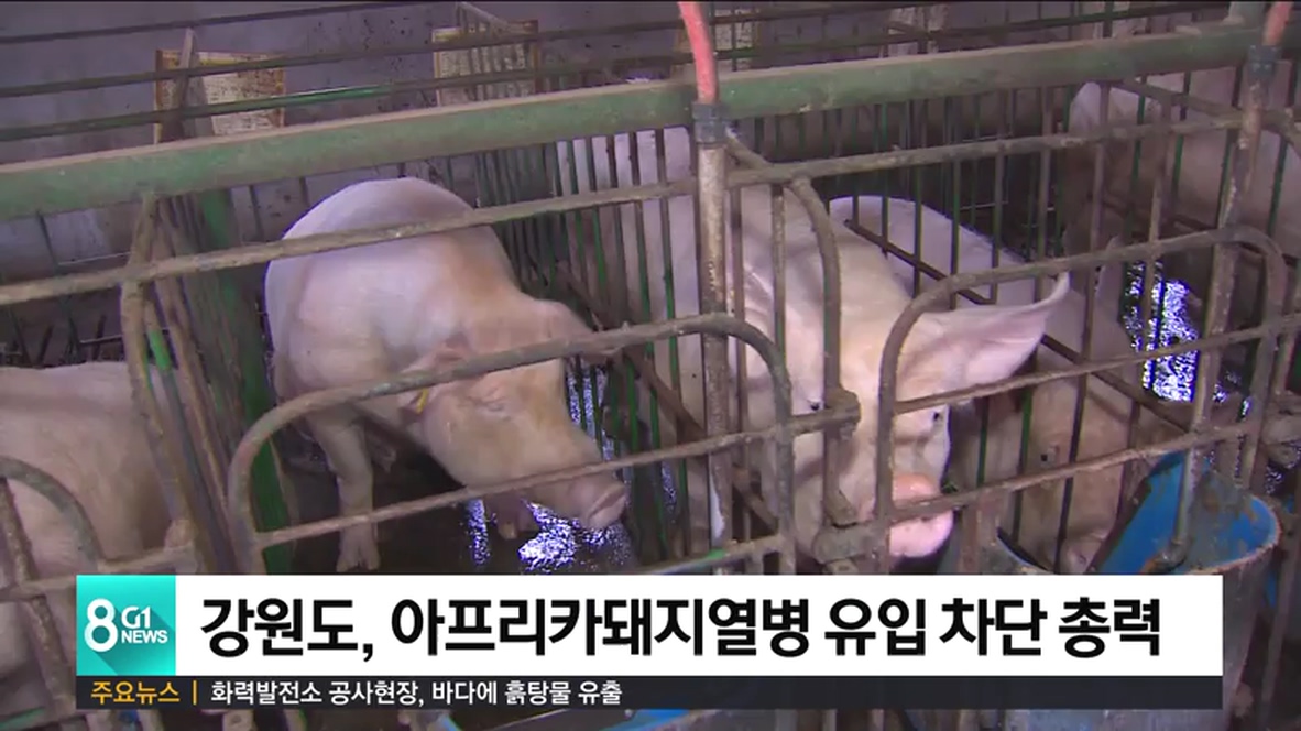 강원도는 중국에서 발병한 아프리카돼지열병 바이러스가, 중국을 다녀 온 여행객이 반입한 돈육가공품에서 검출됨에 따라, 도내 유입 저지에 총력을 기울이고 있다고 밝혔습니다.