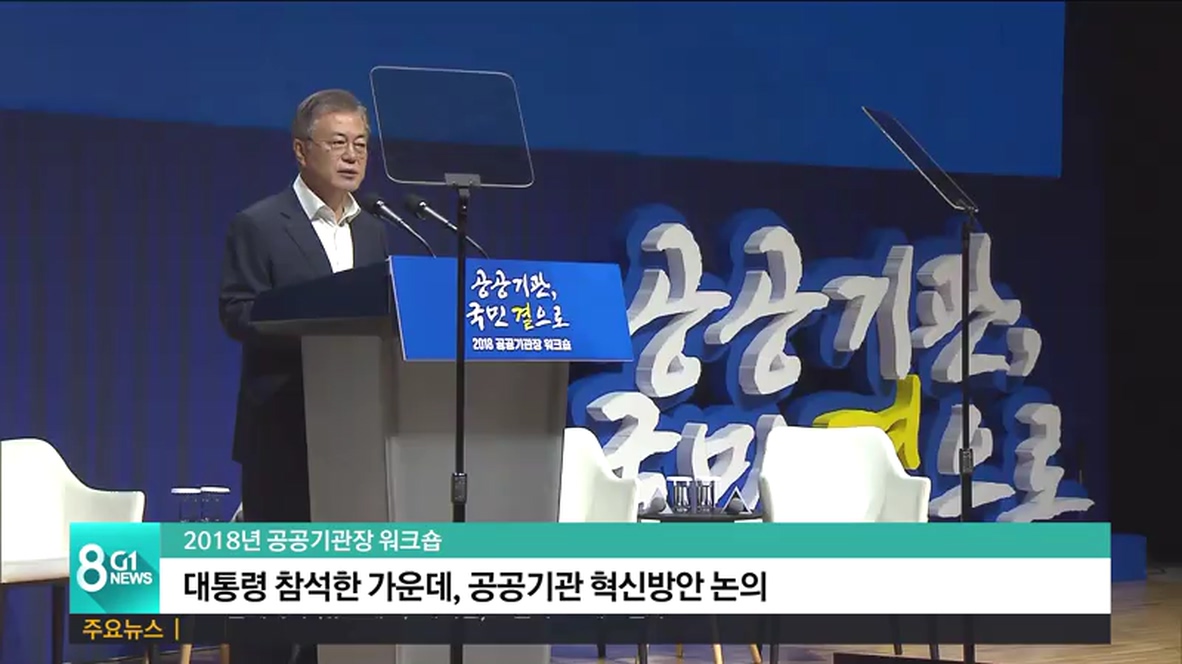 2018년 공공기관장 워크숍이 문재인 대통령을 비롯한 정부 부처 장관과 공공기관장 등 450여명이 참석한 가운데 오늘 원주혁신도시 국민건강보험공단에서 열렸습니다.