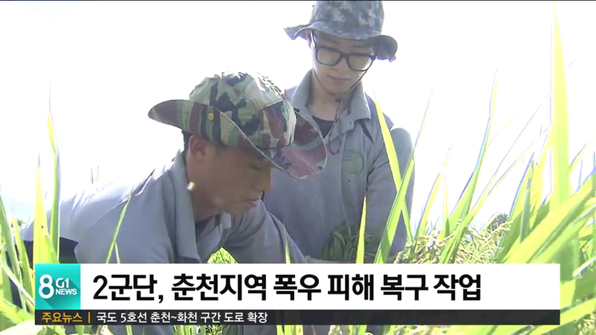 2군단 군장병과 관계자 등은 오늘, 집중호우로 시설과 재배작물 피해를 입은 춘천시 신북읍 천전2리 농가를 찾아 피해 복구 활동을 벌였고,